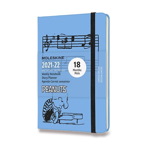Plánovací 18měsíční diář kapesní velikosti obsahuje kalendář od července 2021 do konce roku 2022. Diář z limitované edice s motivy Peanuts je vhodný především pro akademické účely.
