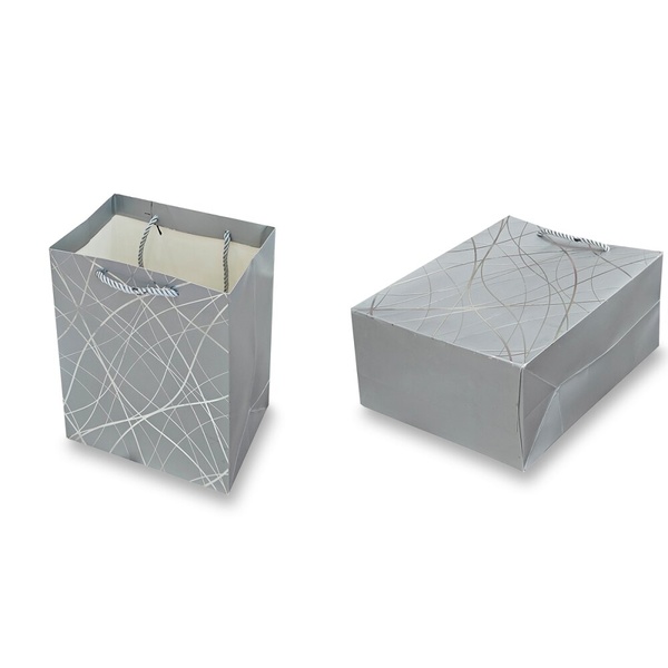 Dárková papírová taška Silver v elegantním stříbrném provedení je ideální pro malé dárky, šperky či drobné předměty. Stylový vzhled dodá vašemu dárku nádech luxusu.