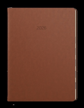 Denní manažerský diář ve větším formátu B5 je ideálním pomocníkem pro efektivní plánování schůzek, úkolů i volného času. Nová elegantní grafika zajišťuje maximální přehlednost vašich poznámek, zatímco moderní matný hnědý obal dodává diáři luxusní vzhled. Perfektní volba pro manažery a všechny, kteří chtějí mít svůj čas pod kontrolou. šitá vazba V8, hladký, matný materiál, kulaté rohy, kapitálky, saténová stužka, ražba, vlepená kapsa