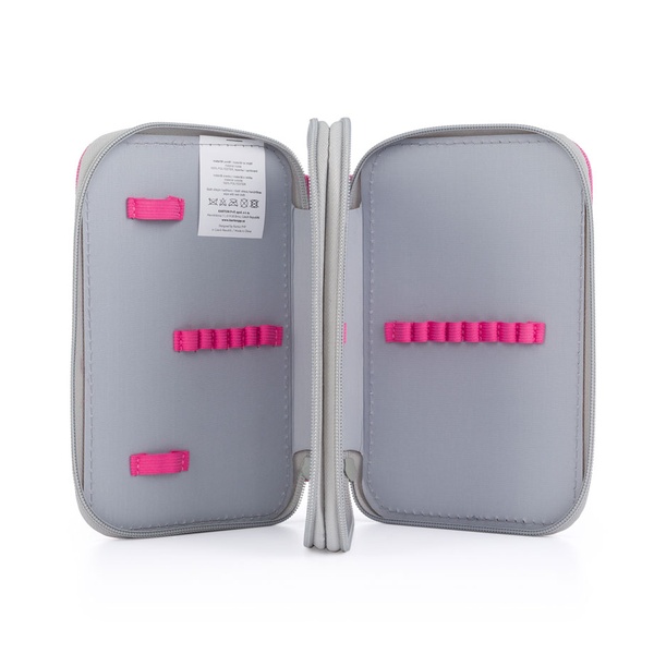 Piórnik ma mocny zamek błyskawiczny z dużymi uchwytami ułatwiającymi obsługę.
