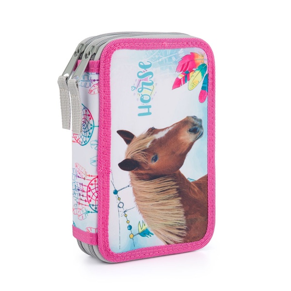 Pełny tekst →Piórnik szkolny dwupiętrowy bez wypełnienia z motywem konia.