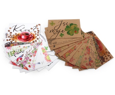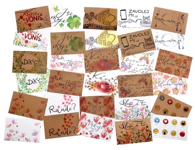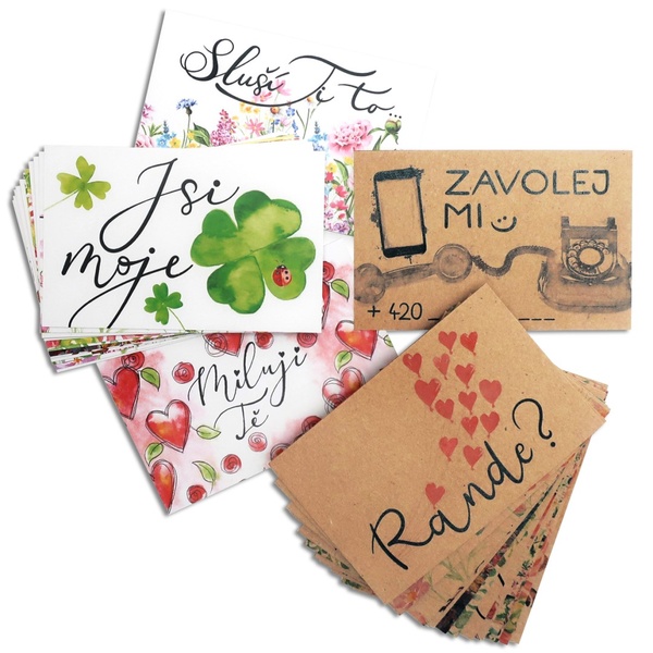V balení najdete 30 originálních kartiček – 15 na bílém a 15 na kraftovém papíře. Díky nim můžete udělat svět kolem sebe krásnější a přátelštější.