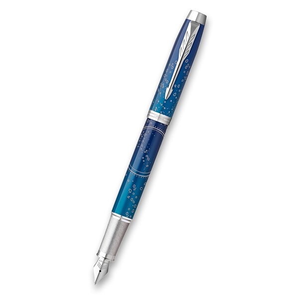 Pełny tekst →Parker IM Last Frontier Füllfederhalter mit lackiertem Gehäuse und Edelstahlkappe mit einzigartiger Farbschattierung von dunklen bis hellen Blautönen.
