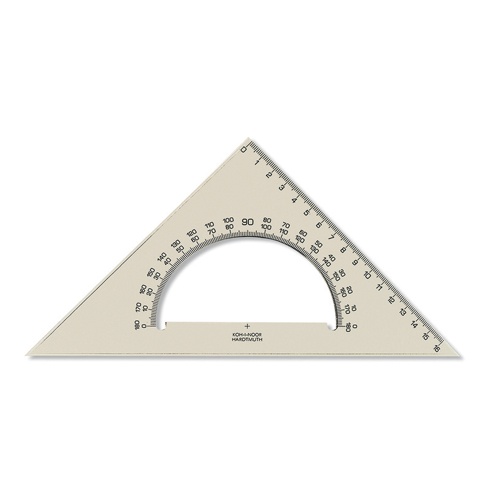 Trójkąt z kątomierzem, z linijką na prawym zawieszeniu.