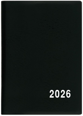 Jednoduchý a praktický měsíční diář vyrobený z jemného hladkého materiálu s polomatným povrchem černé barvy. Ideální pro každého, kdo si oblíbil měkkou šitou vazbu. jemný hladký materiál PVC, potisk roku bílou barvou, šitá vazba V1, ofset, 70g/m2