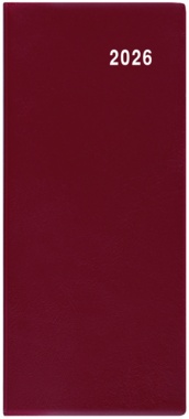 Jednoduchý a praktický měsíční diář vyrobený z jemného hladkého materiálu s polomatným povrchem v barvě bordó. Ideální pro každého, kdo si oblíbil měkkou šitou vazbu. jemný hladký materiál PVC, potisk roku bílou barvou, šitá vazba V1, ofset, 70g/m2