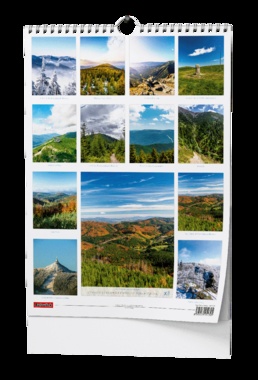 Nástěnný kalendář s obrázky krásných hor Čech a Moravy. Papír: křída lesk, 135 g/m2 Obálka: křída lesk 150 g/m2 Karton je z kvalitní bílé lepenky Dvojitá kovová spirála "twin wire" po celé šířce kalendáře s háčkem pro zavěšení Baleno v průhledném sáčku s průhmatem.