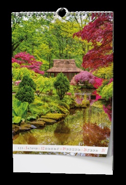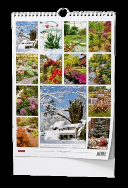 Nástěnný kalendář s obrázky nejkrásnějších zahrad. Papír: křída lesk, 135 g/m2 Obálka: křída lesk 150 g/m2 Karton je z kvalitní bílé lepenky Dvojitá kovová spirála "twin wire" po celé šířce kalendáře s háčkem pro zavěšení Baleno v průhledném sáčku s průhmatem.