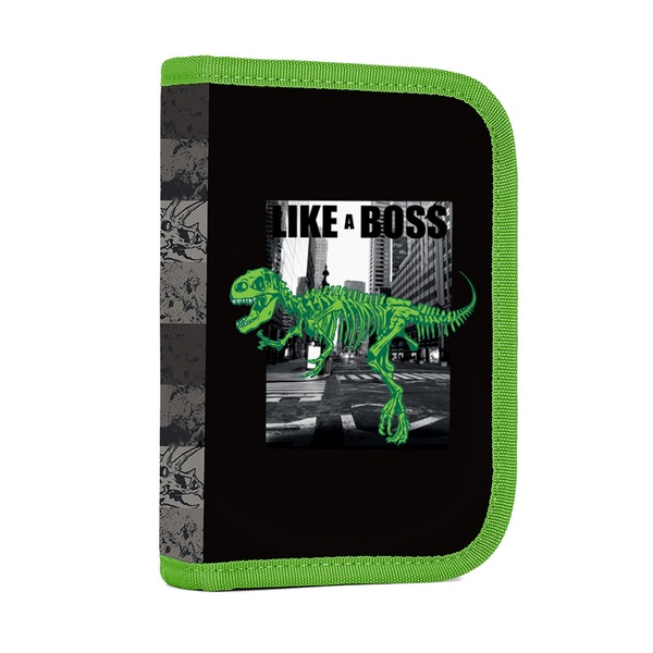 Pełny tekst →Jednopoziomowy piórnik szkolny z 2 klapami, pusty, zawiera 25 gumowych szlufek do przechowywania artykułów piśmiennych.