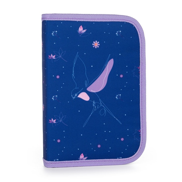 Jednopatrový školní penál s 2 chlopněmi, prázdný. Obsahuje 25 gumových poutek pro uchycení psacích potřeb. Na vnitřních chlopních jsou průhledné fólie pro rozv…