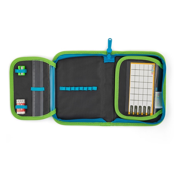 Einstöckiges Schulmäppchen mit 2 Klappen, leer enthält 25 Gummischlaufen zur Aufnahme von Schreibwaren.