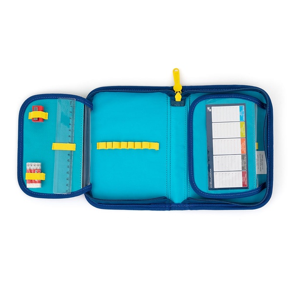 Pełny tekst →Jednopoziomowy piórnik szkolny z 2 klapkami, pusty, zawiera 25 gumowych szlufek do przechowywania artykułów piśmiennych.
