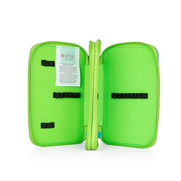 Piórnik zawiera 25 gumowych pętli do przechowywania wszystkich przyborów do pisania i drobnych przedmiotów potrzebnych do nauczania. Piórnik ma mocny zamek błyskawiczny z dużymi uchwytami ułatwiającymi obsługę. Na jednym piętrze znajduje się przeźroczysta przegródka na grafik tygodniowy.