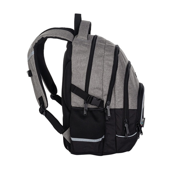 Oxy Scooler to trzykomorowy plecak dla uczniów i studentów z boczną kieszenią na butelkę, organizerem, wewnętrzną małą kieszonką oraz kieszenią na laptopa do 15'' .