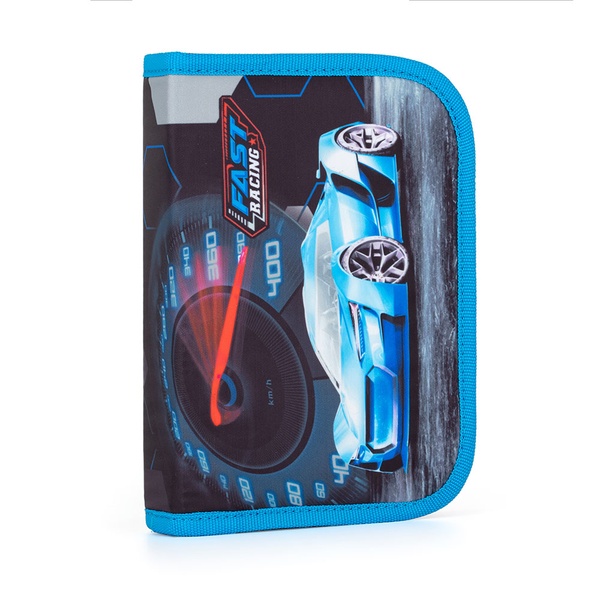 Pełny tekst →Jednopoziomowy piórnik szkolny z 2 klapkami, pusty, zawiera 25 gumowych szlufek do przechowywania artykułów piśmiennych.