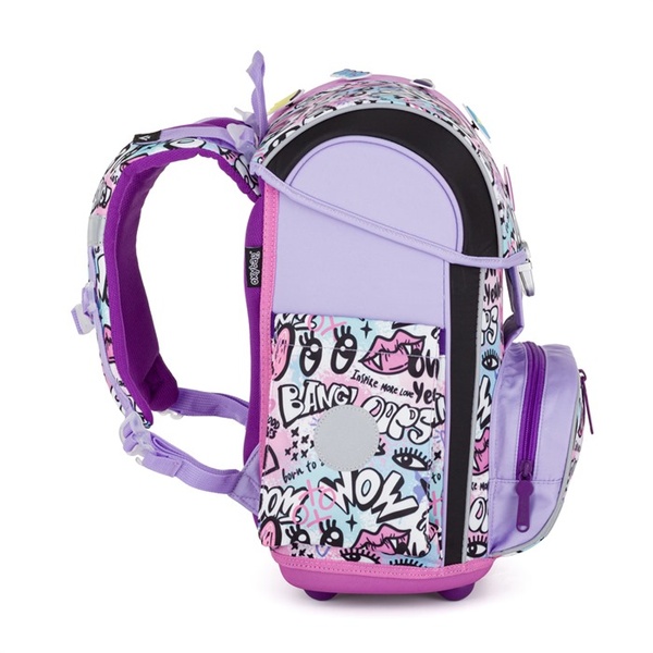 Jedna pojemna komora oferuje wystarczająco dużo miejsca na wszystkie przybory szkolne. Solidne dno chroni zawartość przed przewróceniem i rozlaniem. Zamykana jest na bezpieczną metalową klamrę z odblaskiem. Przednia kieszeń idealnie nadaje się na przekąskę, a elementy odblaskowe zapewniają dziecku lepszą widoczność.