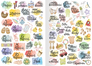 • Něžné motivy – rámečky, ikonky, bannery a popisky pro první dny, měsíce a milníky.
