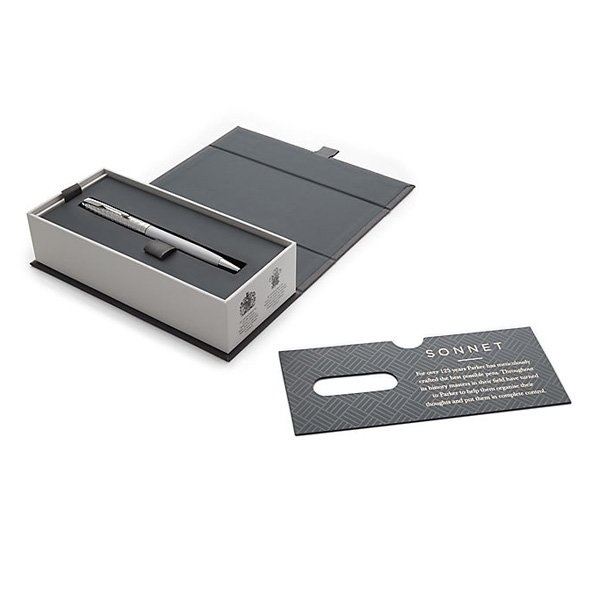 Sonnet je dokonalým zosobněním všeho, co Parker umí nejlépe – mistrovského zpracování hrotů z 18karátového zlata, ideálního rozložení hmotnosti pera i pečlivého sestavení jednotlivých, celkem 17 různých dílů.