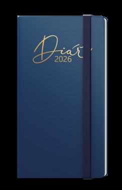 Kapesní týdenní diář v tmavě modré barvě a luxusní zlatou ražbou je malý pomocník pro Vaše plánování. pololesklý, jemně strukturovaný materiál, ražba roku přes stříbrnou pásku, šitá vazba V8, stužka, perforované rožky, ofset, 70g/m2