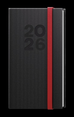 Kapesní týdenní diář v černé barvě ze strukturovaného materiálu a s gumičkou. Jednoduchost, která neomrzí. Moderní doplněk do každé kapsy. Diář má velký prostor pro poznámky a plánování. strukturovaný materiál, ražba roku, šitá vazba V8, stužka, perforované rožky, gumička, ofset, 70g/m2