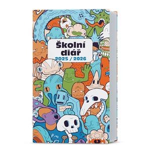 Školní diář s moderní grafikou pro školáky. Všechno důležité pro školáky pohromadě - rozvrh hodin, chemické prvky a také pravopis českého jazyka. tištěná grafika potažená matným laminem, šitá vazba V1