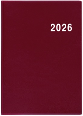 Jednoduchý a praktický týdenní diář vyrobený z jemného hladkého materiálu s polomatným povrchem v barvě bordó. Ideální pro každého, kdo si oblíbil měkkou šitou vazbu. jemný hladký materiál PVC, potisk roku bílou barvou, šitá vazba V1, ofset, 70g/m2