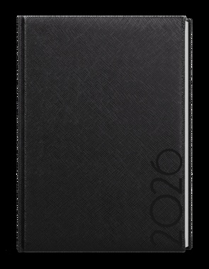 Neobyčejný týdenní diář s lesklým povrchem ze strukturovaného materiálu v černé barvě. Je vyráběný ve formátu A5, má velký prostor pro poznámky a plánování. strukturovaný materiál s lesklým povrchem, ražba roku, jednostranná pěnová výplň desek, šitá vazba V8, stužka, kapitálky, perforované rožky, mapa ČR a SR, vlepená kapsa, ofset, 70g/m2