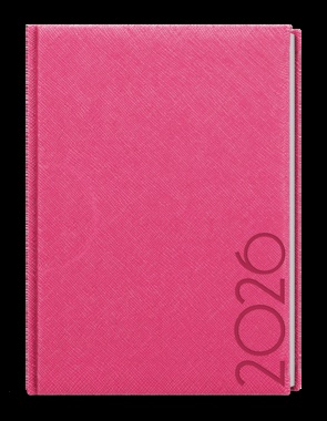 Neobyčejný týdenní diář s lesklým povrchem ze strukturovaného materiálu v růžové barvě. Je vyráběný ve formátu A5, má velký prostor pro poznámky a plánování. strukturovaný materiál s lesklým povrchem, ražba roku, jednostranná pěnová výplň desek, šitá vazba V8, stužka, kapitálky, perforované rožky, mapa ČR a SR, vlepená kapsa, ofset, 70g/m2