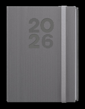 Týdenní diář formátu A5 vyrobený ze strukturovaného materiálu v šedé barvě a s gumičkou. Oblíbená grafika vnitřního bloku Vám pomůže účelně plánovat Vaše dny. strukturovaný materiál, ražba roku, jednostranná pěnová výplň desek, šitá vazba V8, kapitálky, stužka, perforované rožky, mapa ČR a SR, vlepená kapsa, gumička, ofset, 70g/m2