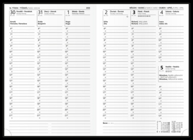 Týdenní diář petrolejové barvy vyráběný z jemné hladké vivelly s efektní ražbou Kola. Formát A5 je vhodný do tašky a má velký prostor pro poznámky a plánování. Pełny tekst →