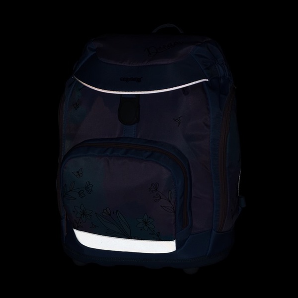 Boczne kieszenie zapinane na zamek idealnie nadają się na butelkę z wodą, przednia kieszeń na przekąskę, a elementy odblaskowe zwiększają bezpieczeństwo dziecka. Dzięki wymiennym rzepom każdy uczeń może dostosować wygląd plecaka do swoich upodobań.