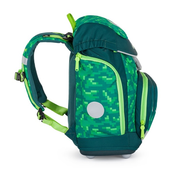 Boczne kieszenie zapinane na zamek idealnie nadają się na butelkę z wodą, przednia kieszeń na przekąskę, a elementy odblaskowe zwiększają bezpieczeństwo dziecka. Dzięki wymiennym rzepom każdy uczeń może dostosować wygląd plecaka do swoich upodobań.
