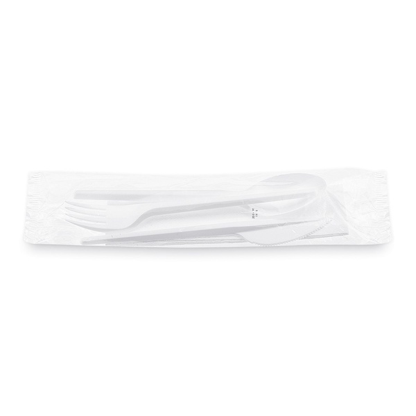 Papírenské zboží - Příborová sada (PP) opakovaně použitelná nůž-vidlička-lžíce+ubrousek bílá [250 sad]Magnifier ico